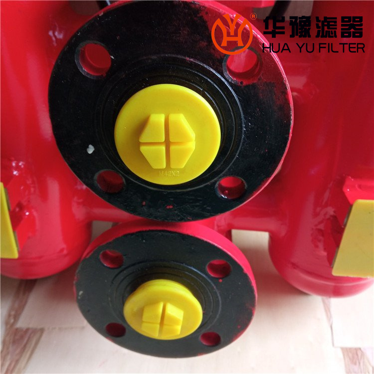 工作特點是當一只濾芯堵塞致使進出口壓差為0.35MPa時,發(fā)訊器發(fā)訊,這時,轉(zhuǎn)動換向閥,使備用濾油器工作,然后更換已堵塞的濾芯;如因故不能及時更換已堵塞濾芯,使進出油口壓差進一步上升到0.4MPa時,旁通閥會自動開始工作,從而保護濾芯及系統(tǒng)正常工作,但用戶應(yīng)盡快更換濾芯;