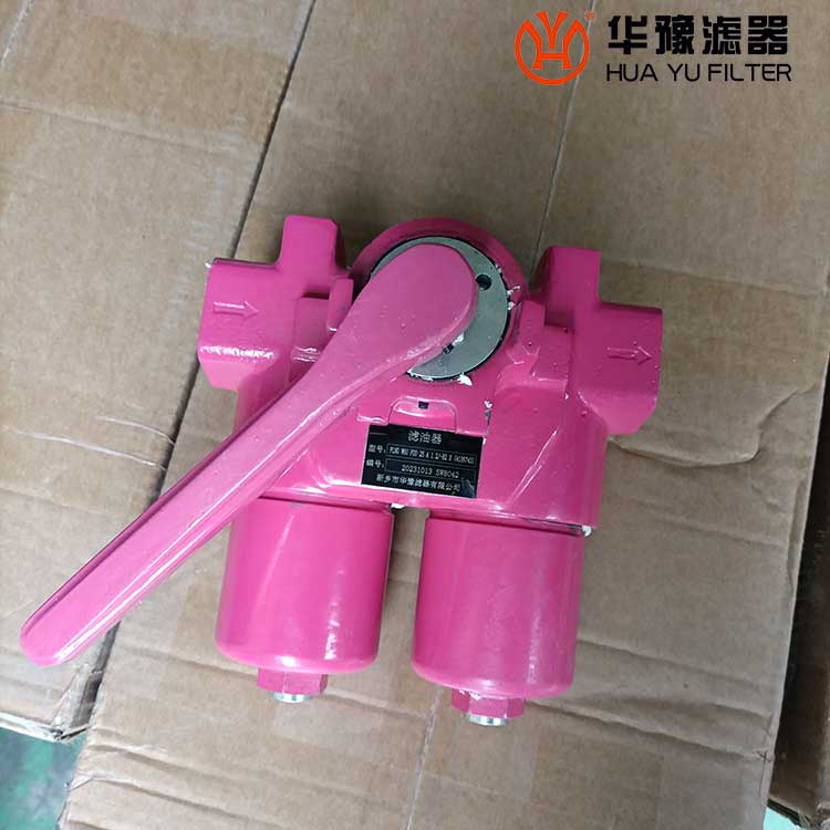 該過濾器是由兩只單筒過濾器、換向閥、旁通閥、發訊器、擴散器等組成。它被安裝在油箱的頂部,可在形同不停機的情況下更換濾芯,適用于連續工作的液壓系統回油精過濾,用來濾除液壓系統中諸元件磨損產生的金屬粉末以及密封件的橡膠雜質等,使流回油箱的油液保持清潔,以利于系統中的油液循環使用。