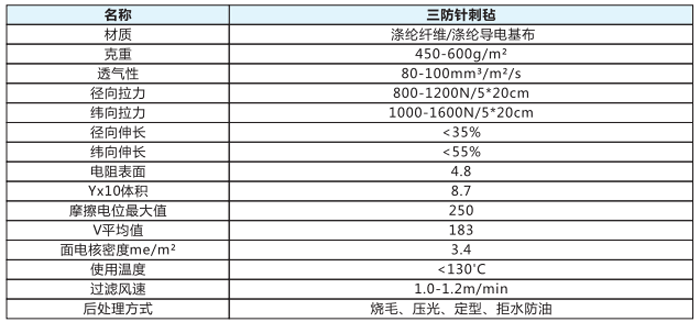 通常工業(yè)性粉塵濃度達(dá)到一定程度(即爆炸極限)時,如遇靜電放電火花或處界點火因素時,則極易導(dǎo)致爆炸和火災(zāi)。同時在除塵器運行中的空氣粉塵含有較多水分和油性、吸濕性和易溶解性粉塵,在粉塵表面出現(xiàn)清灰困難,而該針刺氈結(jié)合成防水和抗靜電兩種針剌氈的優(yōu)點與普通濾料相比,不僅具有防油防濕特性,而且具有防靜電的效果。