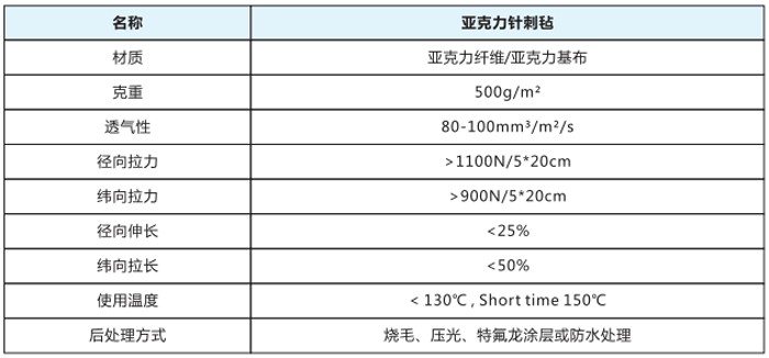 中溫濾料系列亞克力針刺氈